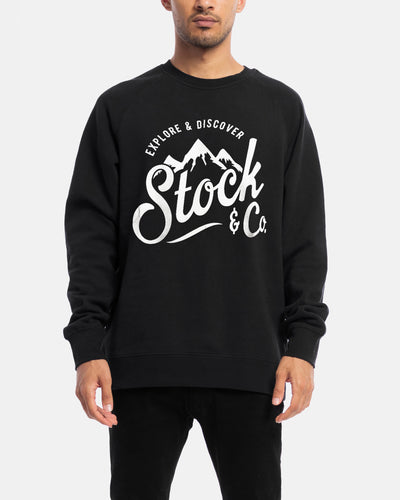 Inspired by the great outdoors this style will keep you dreaming of weekends away. Featuring a printed mountain scene the Original Explorer Crewneck by Stock & Co. combines vintage design with quality construction.